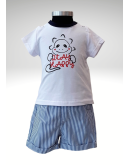 Completo neonato maschio BOYZONE composto da una maglietta con una simpatica stampa ,in tessuto elasticizzato e pantaloncino rigato